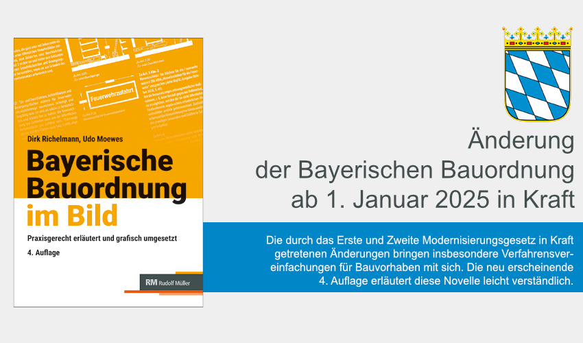 BayBO 2025 neu: Die Bayerische Bauordnung (BayBO) wurde im Dezember 2024 geändert. Verkündet wurden die Änderungen am 23.Dezember 2024 im Gesetz- und Verordnungsblatt Nr. 14 Seite 605 und 619 bzw.